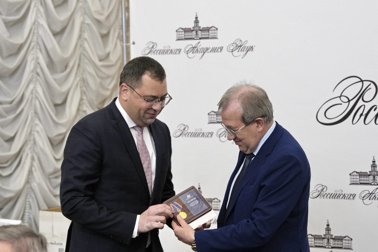 RAS President and Academician Gennady Krasnikov awarded Pavel Moiseev, the rector of Derzhavin University, with the jubilee medal "300th Anniversary of the Russian Academy of Sciences." The ceremony took place at the meeting of the RAS Expert Council.